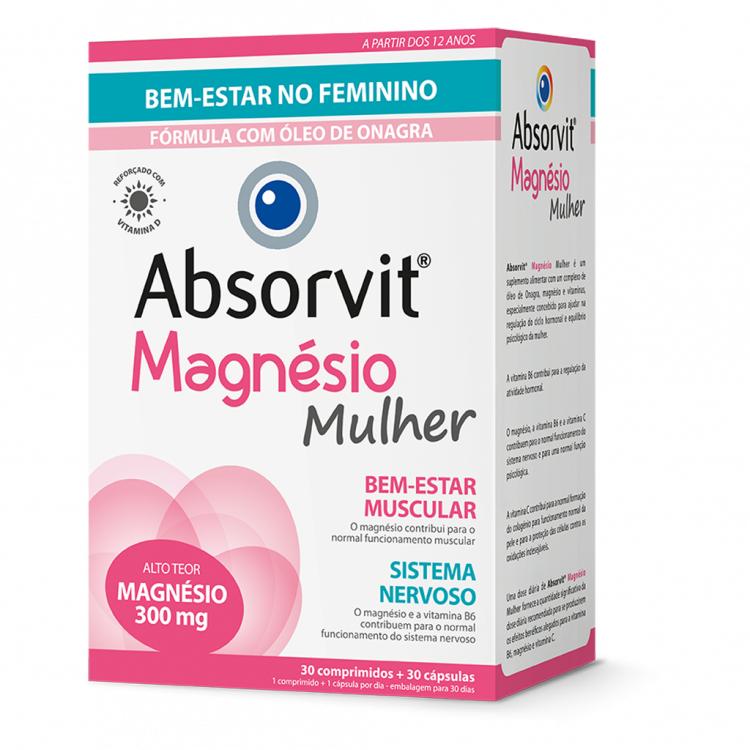 ABSORVIT® MAGNÉSIO MULHER é um suplemento alimentar com um