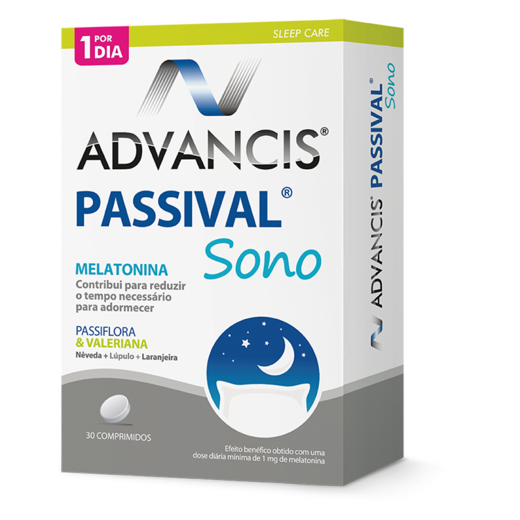 Advancis Passival Sono Comprimidos é um suplemento alimentar que contribui para reduzir o tempo para adormecer e auxilia ainda no alívio dos sintomas subjetivos da diferença horária (Jet-lag).