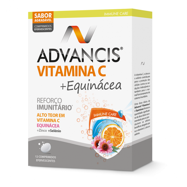 ADVANCIS® VITAMINA C + EQUINÁCEA é um suplemento alimentar natural composto por equinácea, vitamina C, zinco e selénio. Esta associação de ativos ajuda a aumentar as resistências e a reforçar as defesas do organismo face a constipações e outras afeções próprias do inverno, bem como todas as situações de fraqueza ao longo do ano.