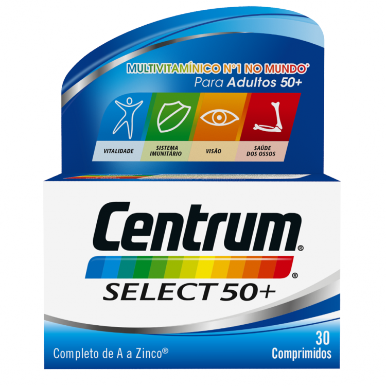 Centrum Select 50+ é um suplemento alimentar completo com vitaminas e minerais, numa fórmula especialmente equilibrada e completa. Especificamente desenvolvida para adultos com mais de 50 anos.