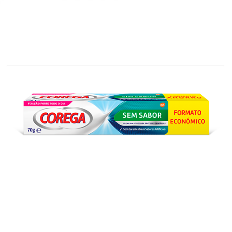Corega Sem Sabor é um creme fixativo que proporciona uma fixação forte todo o dia. Não altera o sabor dos alimentos. A primeira vez aplique uma pequena quantidade. Aplicar demasiado creme fixativo pode fazer com que o produto transborde da prótese. Podem ser necessárias várias tentativas até que encontre a quantidade correta. Aplique uma vez ao dia para uma fixação segura. Se necessitar de aplicar mais do que uma vez ao dia consulte o seu dentista. APLICAÇÃO: 1. Aplique sobre a prótese limpa e seca, uma vez ao dia, em tiras curtas. 2. Enxagúe a boca, ajuste a prótese no seu lugar, pressione firmemente e morda para assegurar a fixação. PARA RETIRAR A PRÓTESE: 1. Enxagúe a boca com água morna e depois retire lentamente a prótese. 2. Elimine os restos de creme fixativo da boca e prótese com água morna e uma escova suave.