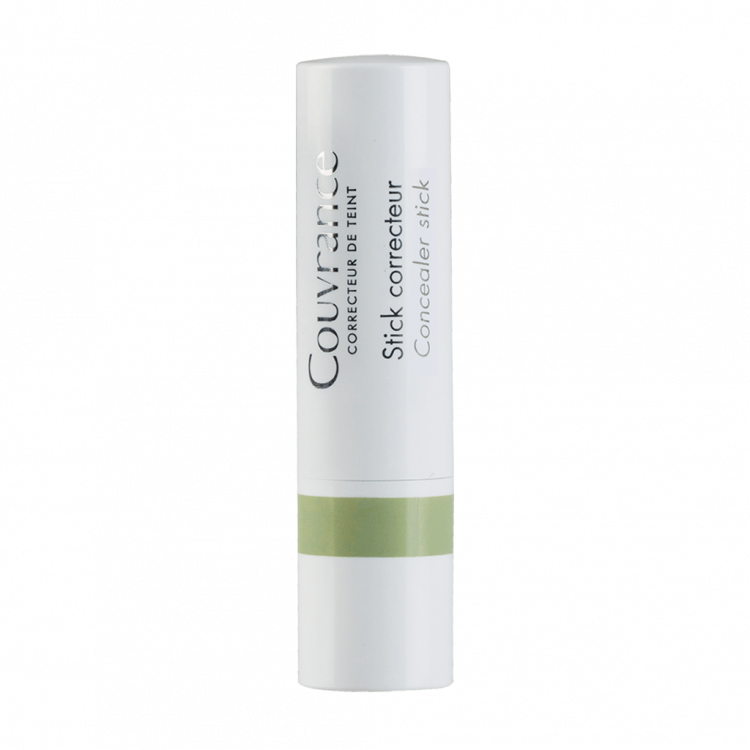 Couvrance Stick Corretor Verde indicado para pele sensível. Deve-se colocar por cima de cuperose, cicatrizes recentes, angiomas, vasos visíveis, vermelhidão pós-laser.
