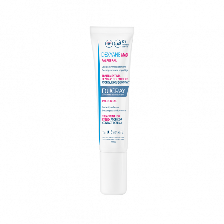Dexyane MeD Palpebral trata e limita a recorrência de lesões de eczema das pálpebras. A sua textura com efeito penso ultra-hidratante: - alivia imediatamente e descongestiona - alivia o prurido e a dor, reduz a vermelhidão e irritação - restaura a barreira da pele - limita a adesão bacteriana