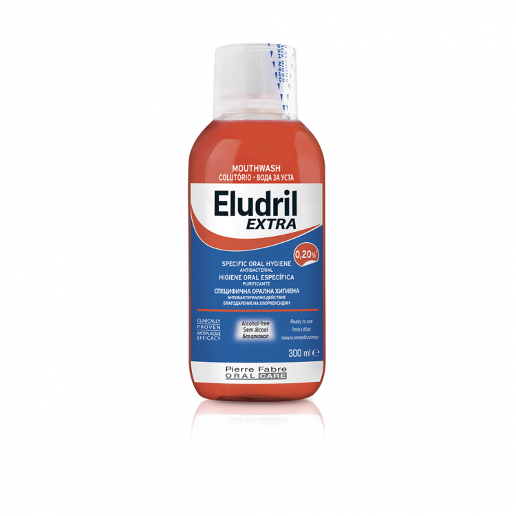 ELUDRIL Extra ajuda a combater a formação da placa bacteriana e a prevenir o desenvolvimento ou agravamento dos problemas das gengivas, contribuindo para uma melhor saúde oral. Conta com uma concentração ótima de cloro-hexidina 0,20% e um efeito prolongado até 12 horas. ELUDRIL Extra pode ser utilizado como complemento em tratamentos periodontais ou implantares.