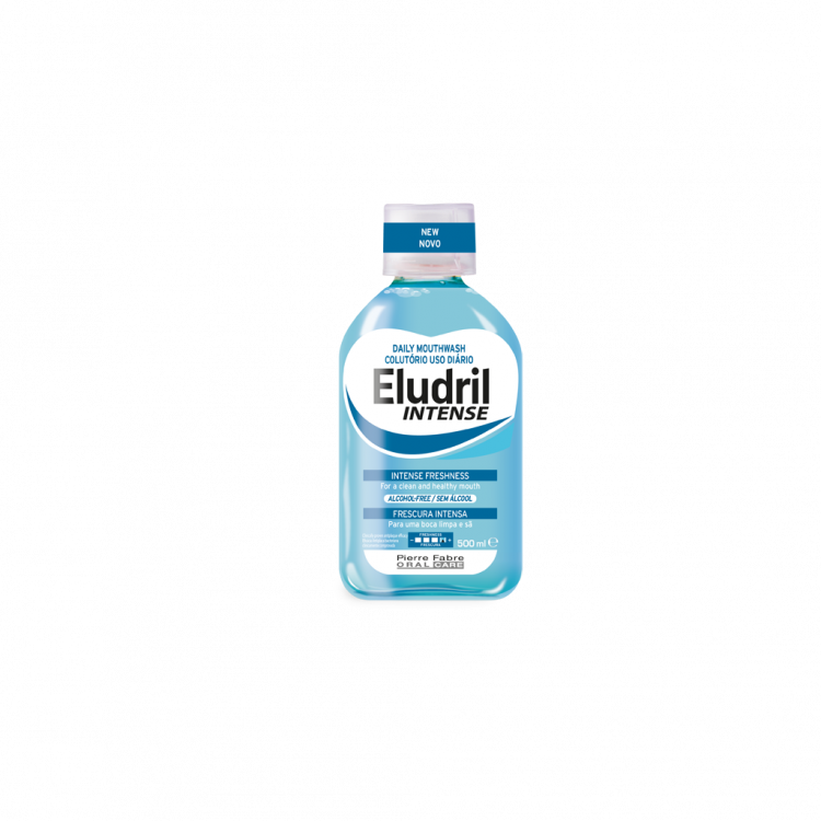 ELUDRIL INTENSE é um colutório, de uso diário, que pode ser utilizado após a escovagem para uma frescura intensa e uma boca saudável. Sem álcool e com um sabor mentolado e fresco, proporciona uma sensação de frescura intensa e ajuda a limitar o desenvolvimento da placa bacteriana.