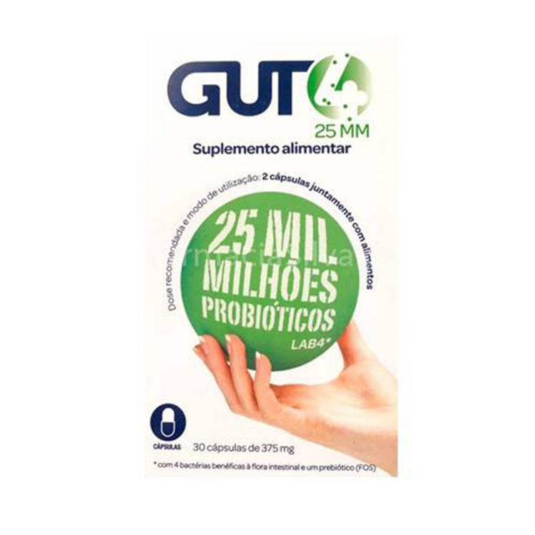 Gut4 é um suplemento alimentar em cápsulas que atua ao nível da flora intestinal, para ajudar a mantê-la saudável.