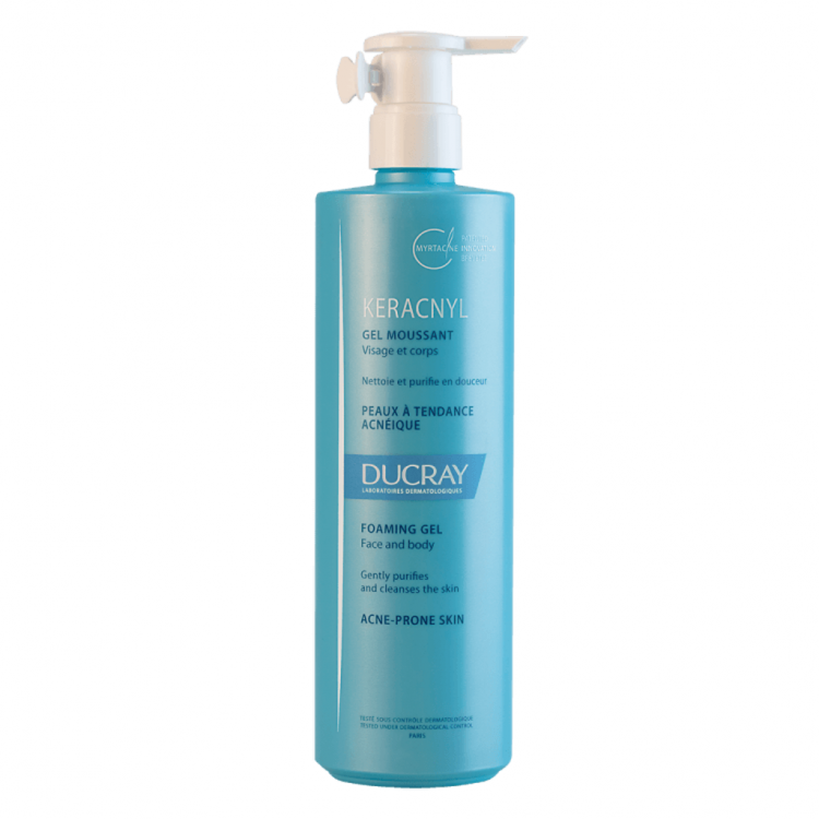 Keracnyl Gel Espuma limpa diariamente, com suavidade, a pele oleosa e/ou de tendência acneica. Purifica a pele em profundidade. Rosto e corpo.
