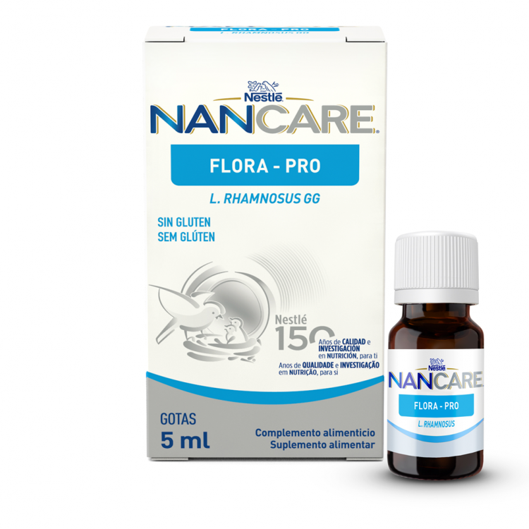 Para ajudar o seu bebé com um extra de cuidado e apoio no seu desenvolvimento, a NESTLÉ desenvolveu NANCARE Flora-PRO com L. rhamnosus GG, uma bactéria presente no leite materno que vai atuar na flora intestinal no momento da diarreia ou tratamento antibiótico.