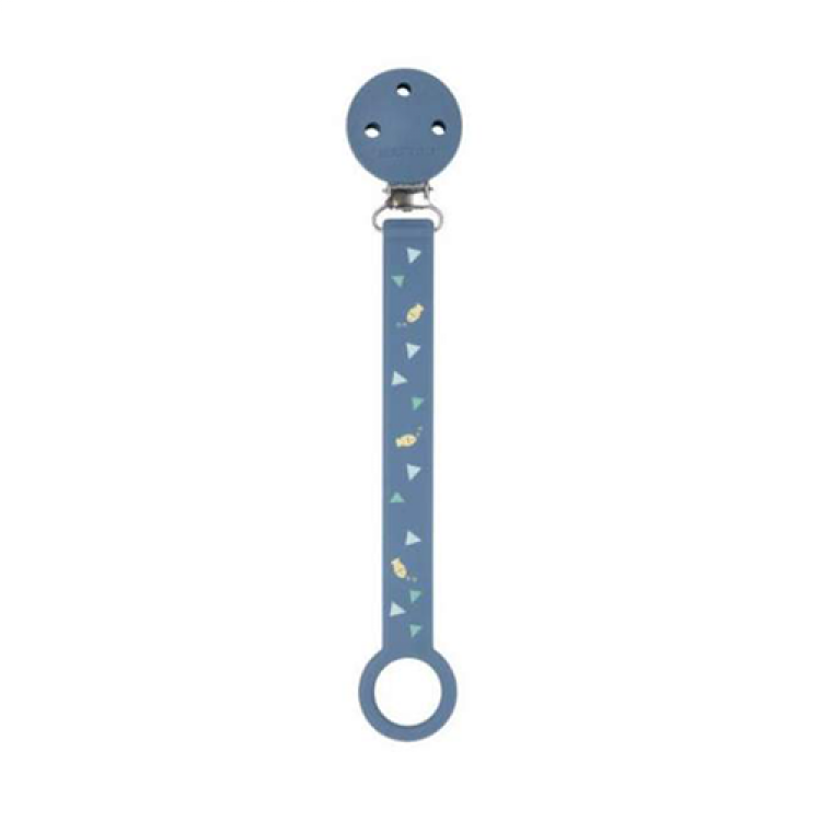 Corrente de chupeta Nattou com fita de silicone em azul e tema de peixes.