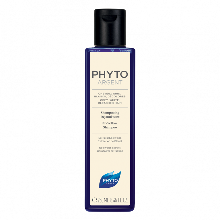Champô antiamarelado que neutraliza os reflexos amarelos dos cabelos cinzentos, brancos e descolorados e sublima o seu brilho.