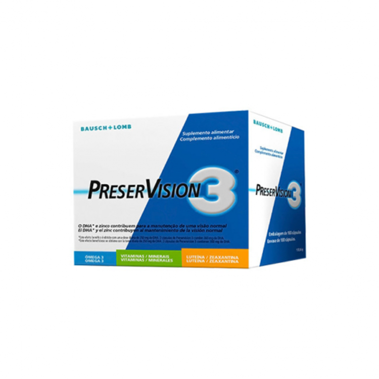 Preservision 3 ajuda a preservar a saúde dos olhos. É um suplemento alimentar rico em vitaminas e contém um sal mineral anti-oxidante, pigmentos da família dos carotenóides ( luteína e zeaxantina ) e ainda ácidos gordos ómega 3.