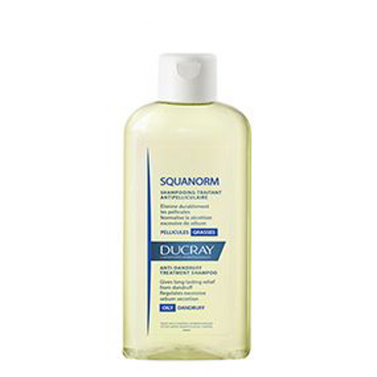Ducray Squanorm Champô para cabelos com caspa oleosa elimina de forma duradoura a caspa e normaliza a secreção excessiva de sebo. Lava suavemente os cabelos e o couro cabeludo.