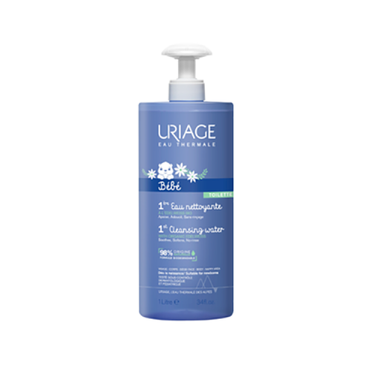 A 1ª Água de Limpeza limpa delicadamente e elimina as impurezas. A sua fórmula enriquecida com o complexo natural [Água Termal de Uriage + Edelweiss Biológico] suaviza, acalma e protege a pele delicada do bebé. Ideal para a rotina de higiene diária: rosto, corpo e rabinho do bebé. NÓS ADORAMOS: a sua excelente tolerância (pH fisiológico, sem sabão), o seu aroma icónico e viciante e o seu novo doseador!1. LIMPACom uma base lavante suave, sem sabão e com pH fisiológico, elimina as impurezas. 2. SUAVIZA, ACALMA E PROTEGE A PELEGraças ao complexo natural [Água Termal de Uriage + Edelweiss Biológico], a 1ª Água de Limpeza deixa a pele do bebé suave, apaziguada e protegida. ABORDAGEM ECO-FRIENDLY:Fórmula biodegradável e origem natural:- 98% de ingredientes de origem natural. - Fórmula biodegradável em conformidade com a norma OCDE301F/OECD301F. - Complexo de origem local (Alpes) 100% natural: [Água termal de Uriage + Edelweiss biológico]. Embalagem eco-responsável:- Garrafa 100% reciclável.