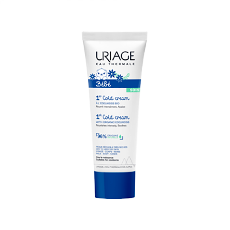 1º Cold Cream protege e nutre intensamente a pele seca e delicada do bebé contra as agressões externas (vento, frio, calcário da água, etc. ). A sua fórmula enriquecida com o complexo natural [Água Termal de Uriage + Edelweiss Biológico], acalma e recupera o conforto cutâneo. Com agentes sobreengordurantes como o Esqualano Vegetal, rico em ácidos gordos essenciais, preserva o filme hidrolipídico da pele. NUTRE INTENSAMENTEEnriquecido com Cera de Abelha e Óleo de Girassol, este cuidado é ultra-nutritivo e calmante. O Esqualano Vegetal ajuda a preservar o filme hidrolipídico. ACALMA E PROTEGEA sua fórmula com o complexo natural [Água Termal de Uriage + Edelweiss Biológico] e Óleo de Jojoba protege e acalma a pele delicada do bebé. ABORDAGEM ECO-FRIENDLY:Fórmula de origem natural:- 97% de ingredientes de origem natural. - Complexo de origem local (Alpes) 100% natural: [Água termal de Uriage + Edelweiss biológico]Embalagem eco-responsável:- Caixa: 100% reciclável. - Tubo de alumínio: 100% reciclável.