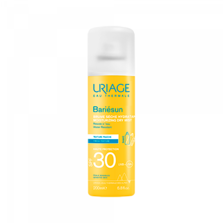 Bariésun combina um complexo filtrante com elevada eficácia e as propriedades da Água Termal de Uriage para proteger a pele e prevenir os danos celulares provocados pelos raios UVA e UVB. O sistema contínuo de aerossol da Bruma Seca Hidratante SPF30 permite uma aplicação fácil, mesmo na pele húmida. Com um efeito ultrarrefrescante, é particularmente adaptada para atividades ao ar livre!Garante elevada segurança e tolerância e uma rápida absorção. Proteção contra os raios UVO seu complexo filtrante oferece proteção muito elevada contra os raios UVA e UVB e radicais livres. Fotoproteção muito elevadaA patente [BARIÉSUN] forma um filme protetor na pele para limitar a penetração dos filtros UV na superfície da epiderme e otimizar a fotoproteçãoAção hidratanteEnriquecida com Aquaspongines e Água Termal de Uriage, oferece proteção elevada contra a desidratação. ABORDAGEM ECO-FRIENDLY:Compromisso com o planeta:Os Laboratórios Dermatológicos de Uriage são membros do 1% for the Planet, com o compromisso ético de apoiar as ONGs que trabalham em prol do meio ambiente. 1% dos lucros de Bariésun revertem a favor desta causa. Embalagem eco-responsável:- Garrafa reciclável.