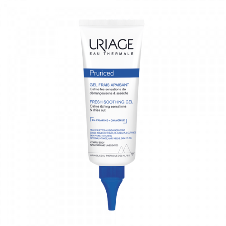 INOVAÇÃO PRURICED ANTI-PRURIDO Este gel fresco acalma a comichão, o formigueiro e o desconforto cutâneo das zonas com pêlos em risco de maceração (pregas cutâneas, zona anogenital); é indicado para todos os tipos de pele. Princípios ativos dermatológicos: [8% Calamina + Glicocola + Camomila]. AÇÃO ANTI-PRURIDO A sua elevada concentração de princípios ativos dermatológicos calmantes [8% Calamina + Glicocola + Camomila] reduz as sensações de prurido, acalma e seca a pele. INOVAÇÃO PATENTEADA Ação patenteada exclusiva Uriage sobre os receptores PAR-2 responsáveis pela sensação de prurido. ELEVADA TOLERÂNCIA A Água Termal Uriage suaviza e acalma todos os tipos de pele, mesmo as sensíveis. Testada dermatologicamente. Indicada para recém-nascidos, crianças, adultos e idosos.