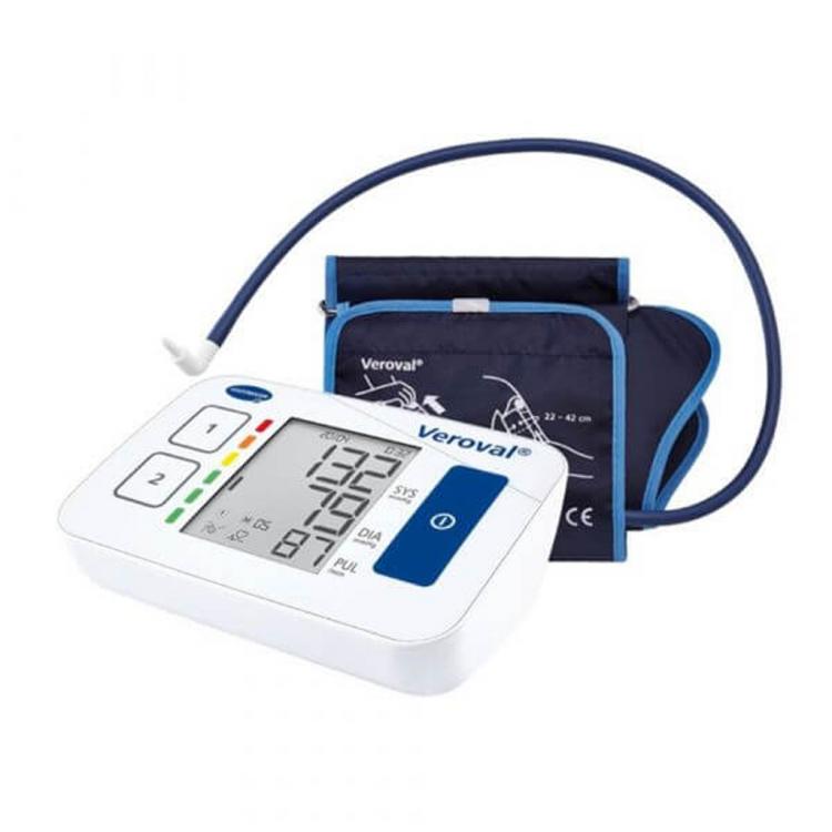 Veroval Compact Tensiómetro de Braço tem um visor grande, de leitura fácil.Deteta possíveis arritmias.Circunferência do braço: 22-42 cm.Capacidade da memória: 2 x 100 medições com o valor médio de todas as medições e com o valor médio matinal/noturno dos últimos 7 dias.Inclui um estojo de armazenamento e 4 pilhas.